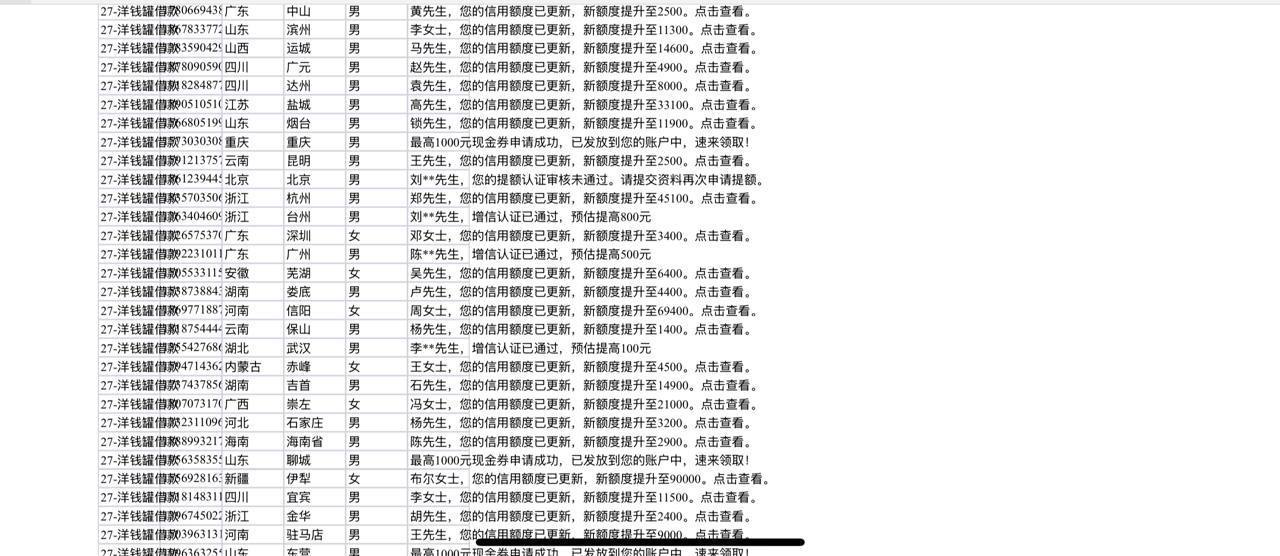 数据属性:日活更新的短信劫持,全格式带姓+性别+内容。
